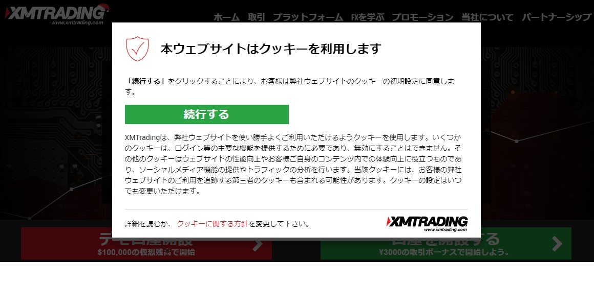 するとXMのページがいったん表示された後、下記のようなメッセージが出ます。